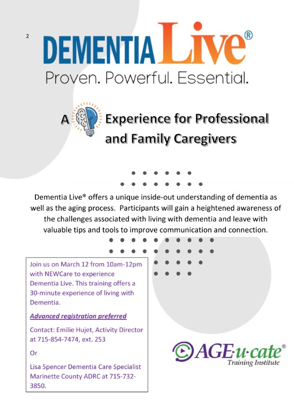 Community Outreach & Events Open to the community, resident families & NEWCare staff! Open to the community!