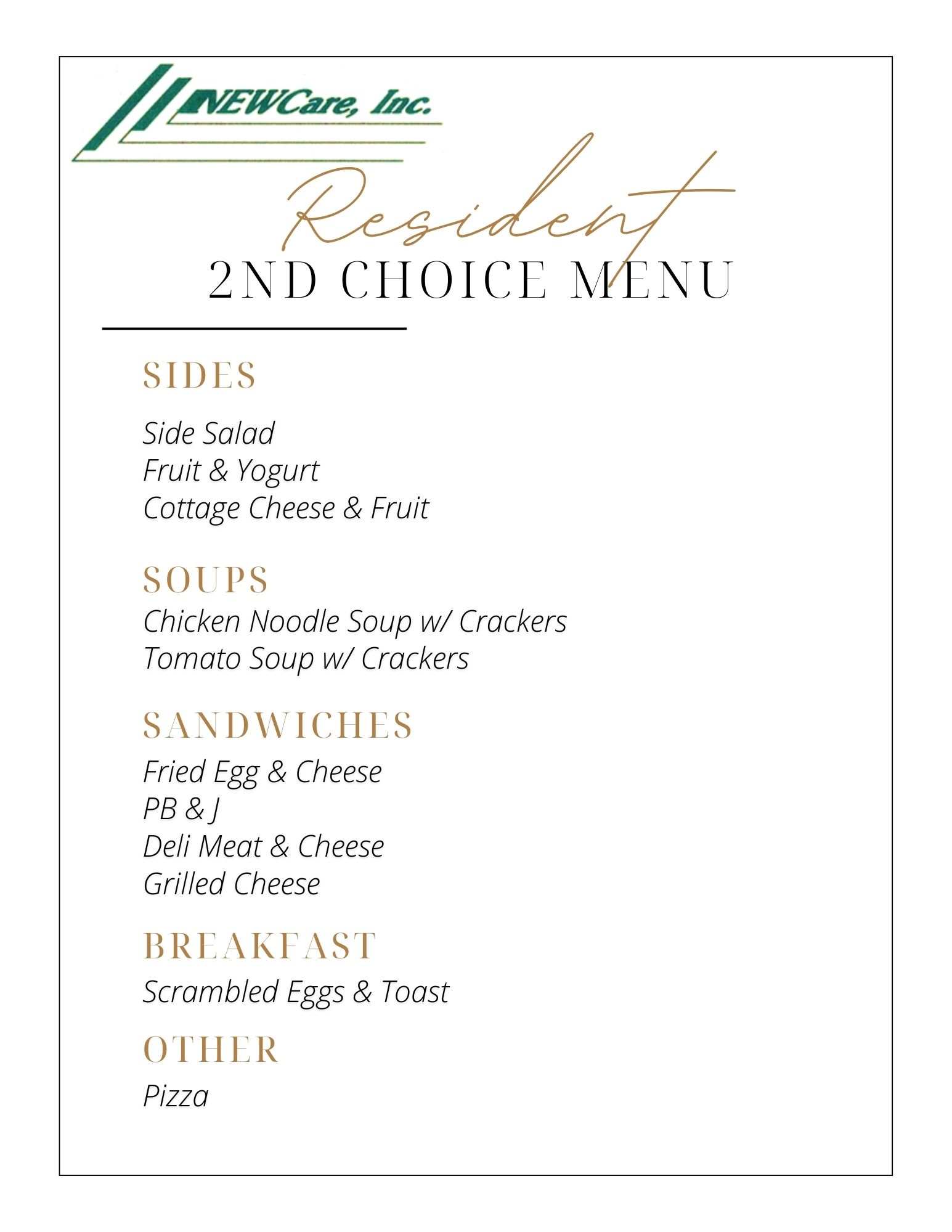 Resident 2nd Choice Menu